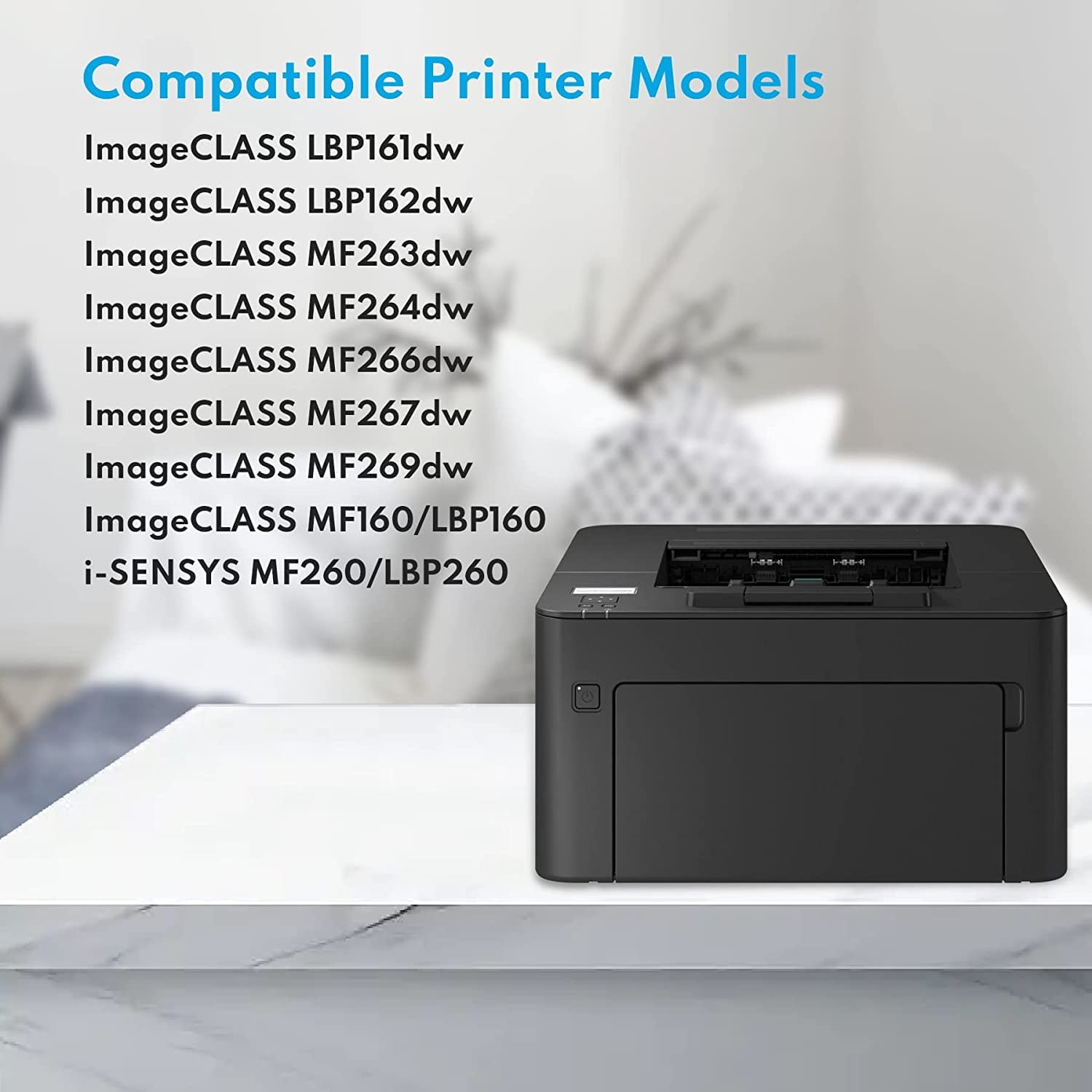Package Contents:<br /> 1 Pack 051H Toner Cartridge (Black)<br /><br /> Compatible Printer Models:<br /> LBP161dw<br /> LBP162dw<br /> MF263dw<br /> MF264dw<br /> MF266dw<br /> MF267dw<br /> MF269dw<br /> MF160/LBP160 Series<br /> i-SENSYS MF260/LBP260 Series<br /><br /> Our advantages:<br /> 1,Repeated inspection during production to ensure compatibility, reliability and safety<br /> 2,Cost-effective, fast printing, and gives you excellent performance,Clear and powerful text and images.<br /><br /> Printing Performance:<br /> 1,Our toner Cartridge deliver photo-quality prints that stay crisp for long periods of time<br /> 2,This high yield toner Cartridge the quality of prints clearly smoothly crisp dark sharp, keep real without fading, stably and long lasting.<br /><br /> our toner:<br /> 1,High quality toner, toner capacity, fine particles, strong adhesion, The image is clear, adding powder is convenient and quick, save time and worry.<br /> 2,Create photo-quality printouts for offices in schools, hospitals, governments, trading firms, financial firms, and more.<br /><br /> Certificate Approved:<br /> With ISO9001 and iso14001 Certificate Approved, Safe and reliable.<br /><br /> After sales guarantee:<br /> If our products have any quality problems, we offer 3 years limited free replacement service.<br /> If Item defective, guaranteed money back: reach us via:<br /> 1. “Order List” -> Click “Contact Seller”.<br /> 2. Click the store name link under “Add to Cart”-> Click ‘Ask a question’