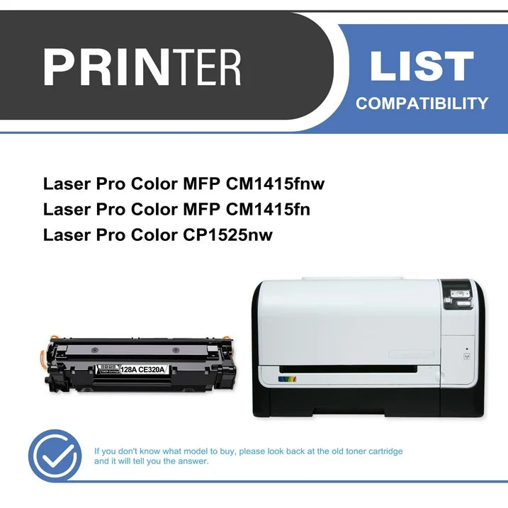 128A CE320A Toner Cartridge Balck 1-Pack Compatible for HP 128A CE320A Toner Cartridges for Laser Pro CM1415 Color, CP1525 Color Series Printer