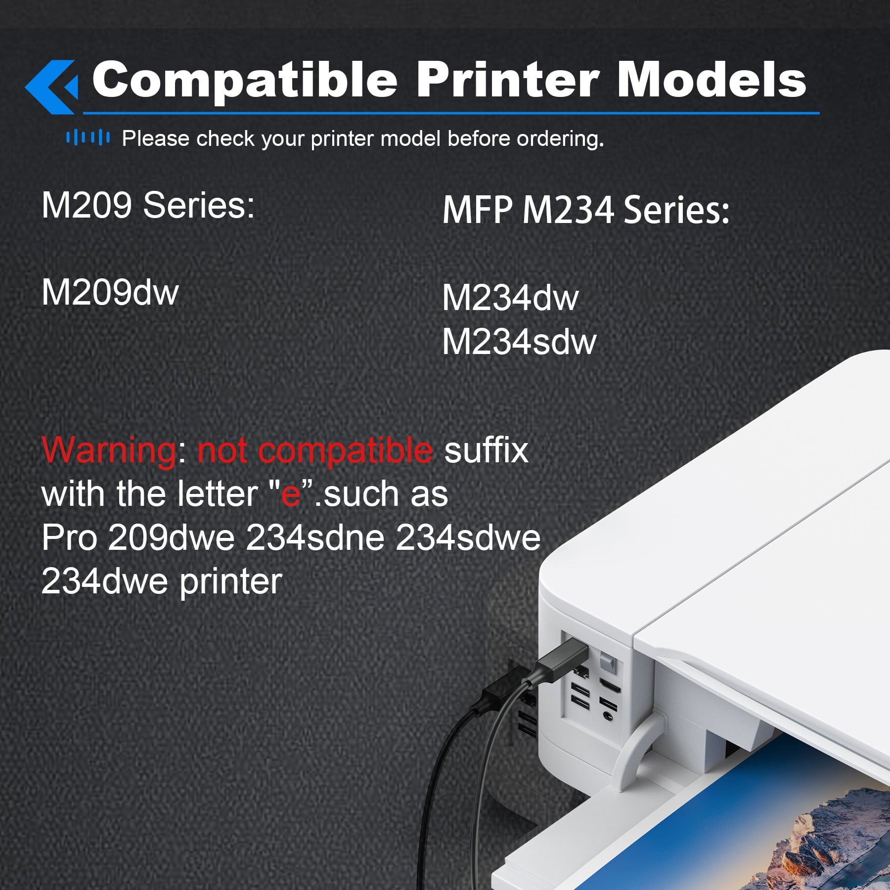 (not compatible suffix with the letter "e" such as Pro 209dwe 234sdne 234sdwe 234dwe printer)
