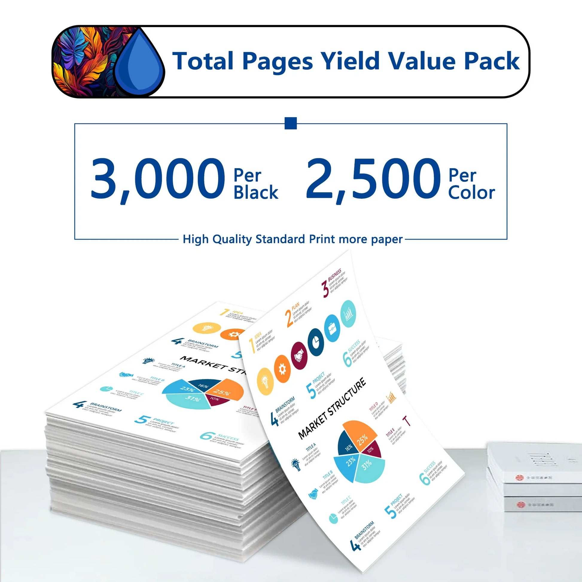 - Estimated Page Yield: 3,000 pages per black, 2,500 pages per Color toner cartridge.(Letter/A4, at 5% coverage)
