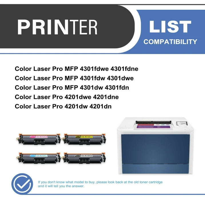 210A W2100A Toner Cartridge 4-Pack Compatible for HP 210A W2100A Toner Cartridges for Color Laser Pro 4201, Color Laser Pro MFP 4301 Series Printer