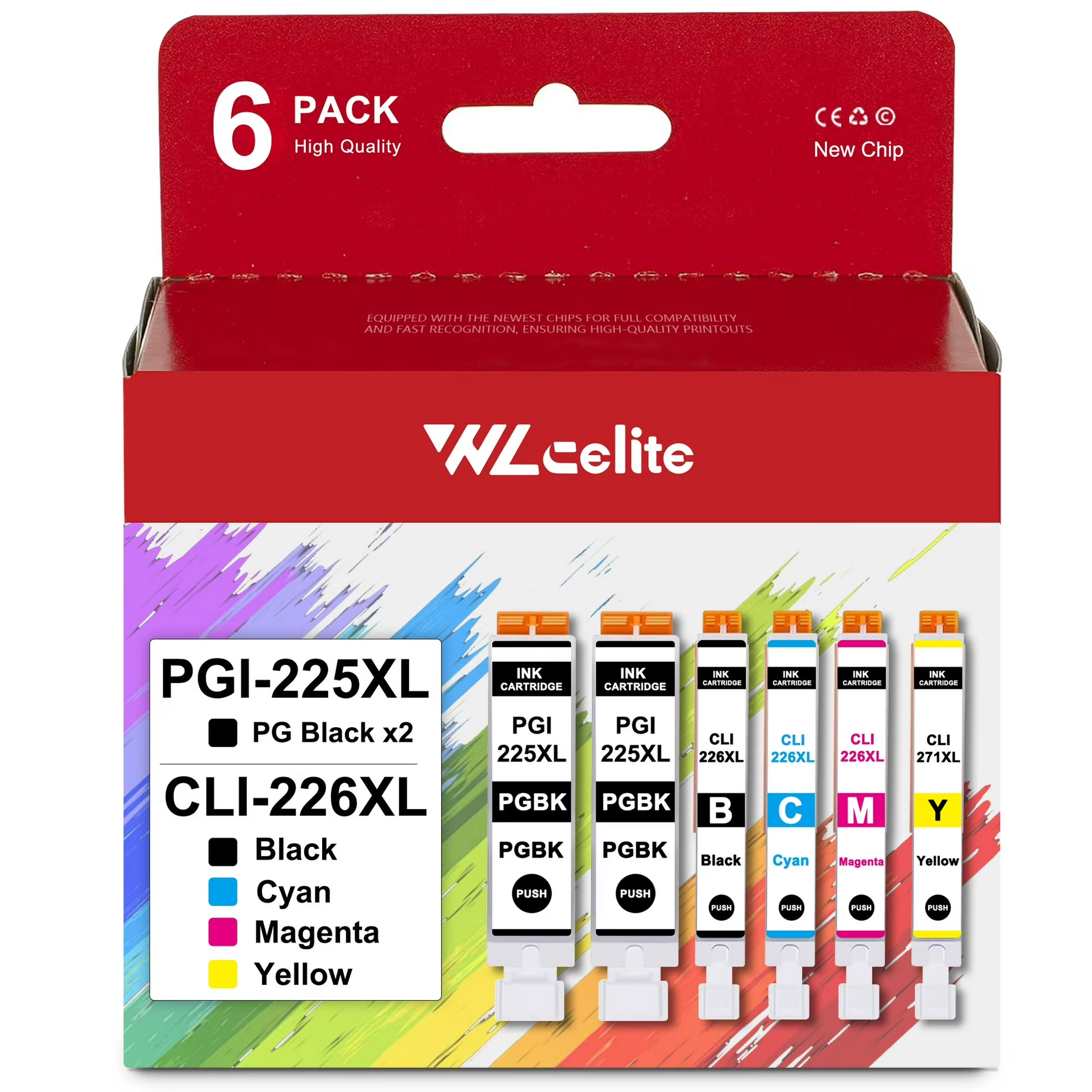 - 🖨️Package Contents: PGI-225 CLI-226 Ink Cartridge (6-Pack)(2*PGBK 1*Black 1*Cyan 1*Magenta 1*Yellow)