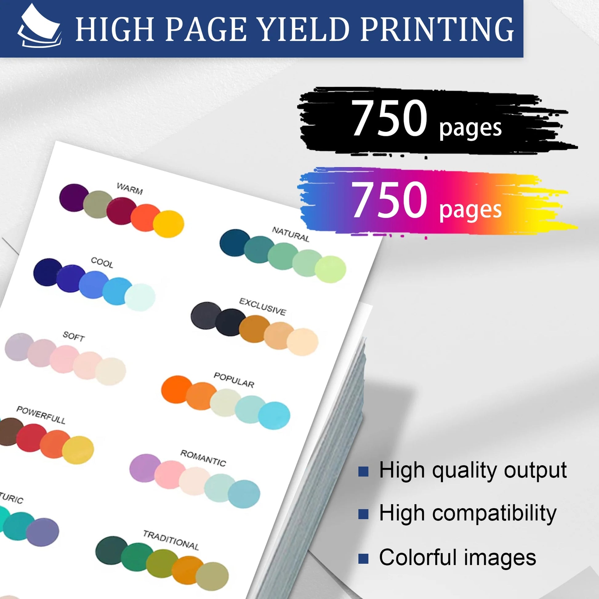- Enjoy high-yield printing with up to 750 pages per cartridge, ensuring efficient and cost-effective printing.