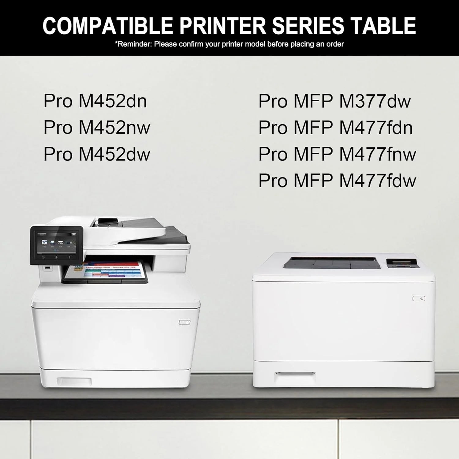 • 📑 Compatible for Printer Models: Pro M452dn, M452dw, M452nw Pro MFP M377dw, M477fdn, M477fdw, M477fnw Printer.
