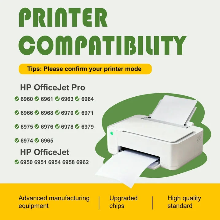 - Compatible models:OfficeJet 6950, 6951, 6954 6958, 6962, PrinterOfficeJet Pro :6960, 6961, 6963, 6964 6965, 6966, 6968, 6970 6971, 6974, 6975, 6976 6978, 6979, Printer