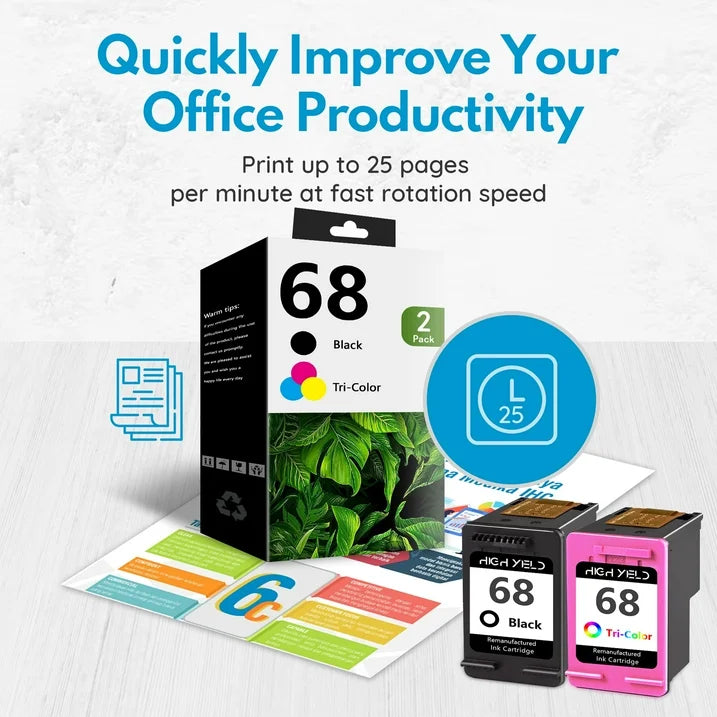 - Package Contents: 2-Pack 68 Ink Cartridge (1-Black, 1-Tri-Color)