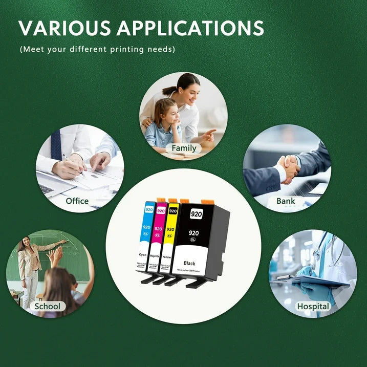 - Package Contents: 4 Pack 920XL Ink Cartridges ( Black, Cyan, Magenta, Yellow)