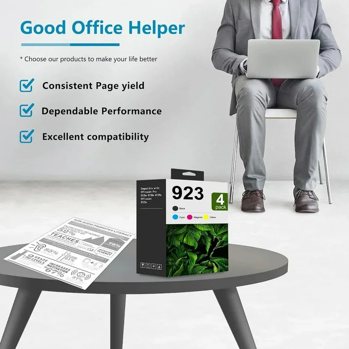- Package Content: 4 Pack 923 Ink Cartridge Compatible for HP 923 Ink Cartridge (Black/Cyan/Yellow/Magenta).