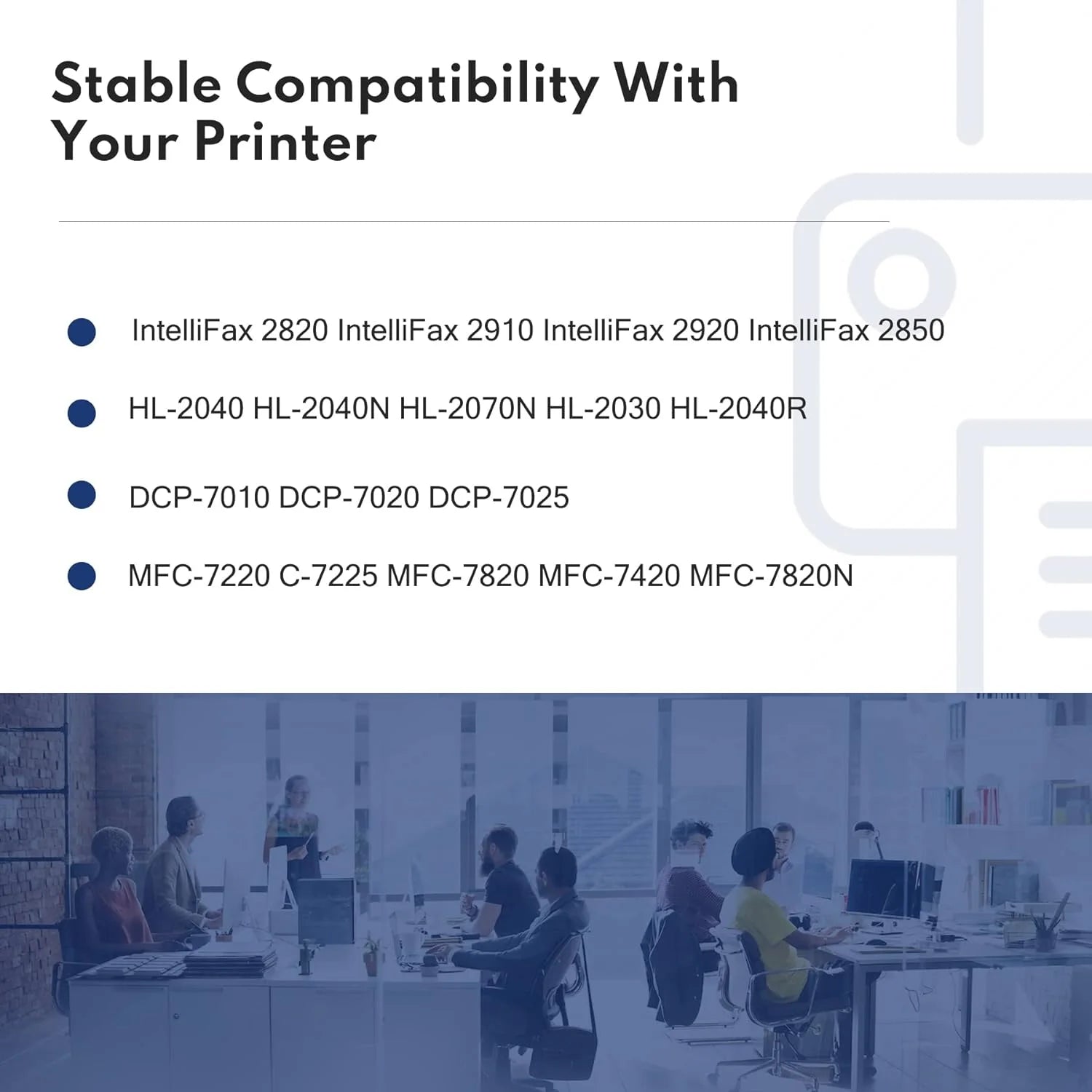 • Compatible with: MFCP-7010 DCP-7020 DCP-7025 IntelliFax 2820 IntelliFax 2910 IntelliFax 2920 IntelliFax 2850 MFC-7220 C-7225 MFC-7820 MFC-7420 MFC-7820N HL-2040 HL-2040N HL-2070N HL-2030 HL-2040R Printer