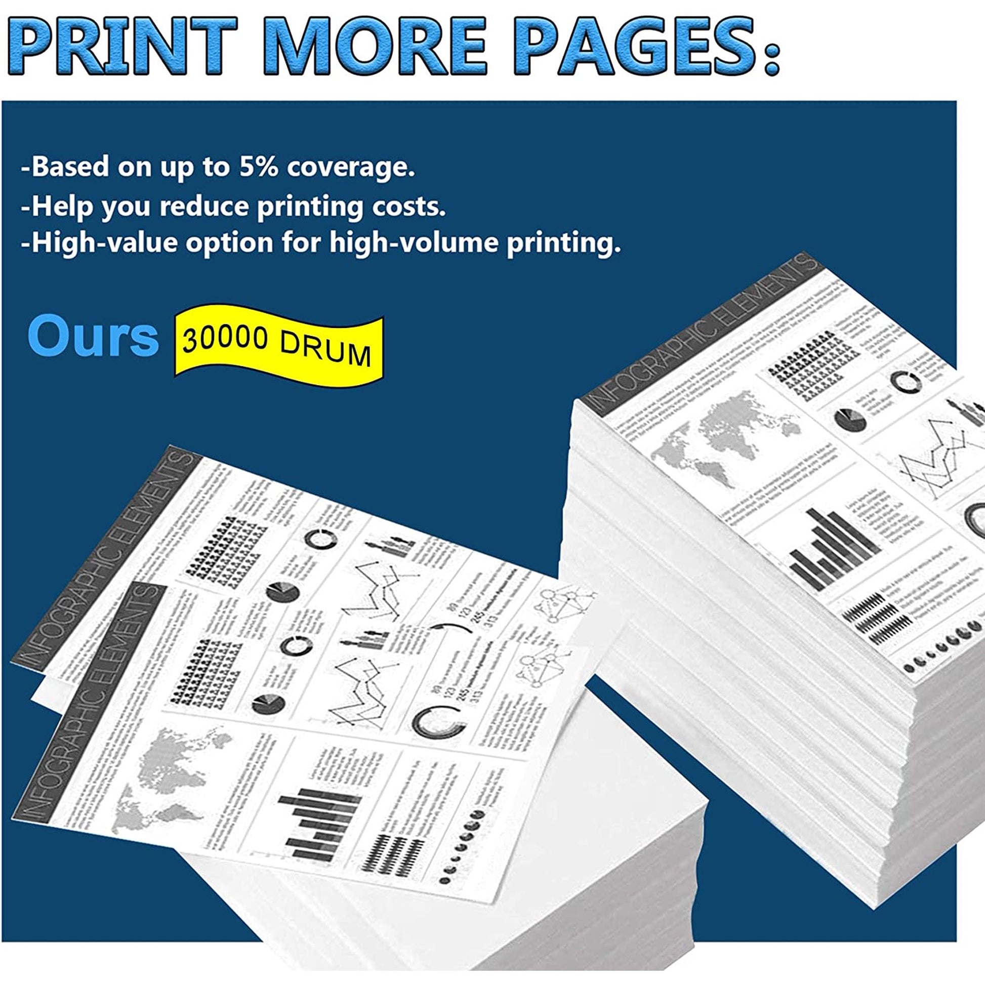 - Page Yield: Up to 30,000 pages per Drum unit at 5% Coverage.