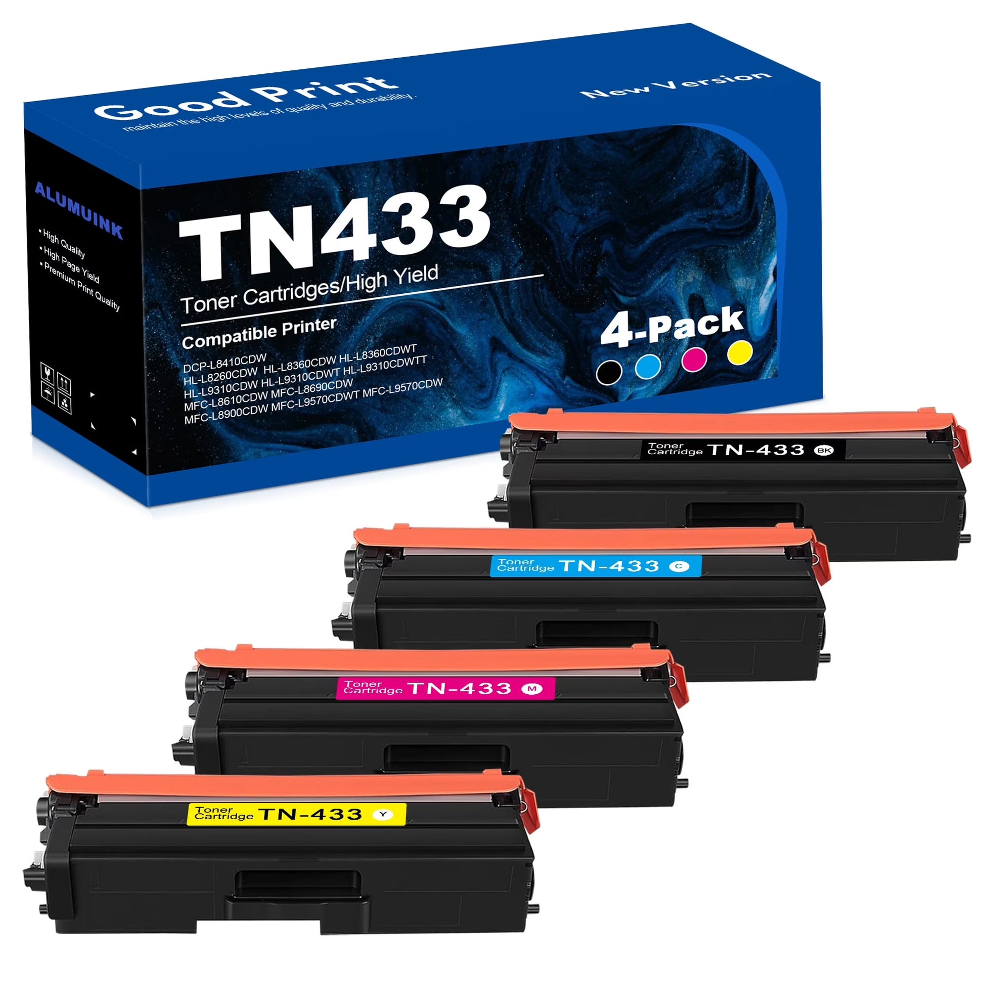 - Package Contents: Includes Black Cyan Magenta Yellow 4 Pack TN433 Toner Cartridge