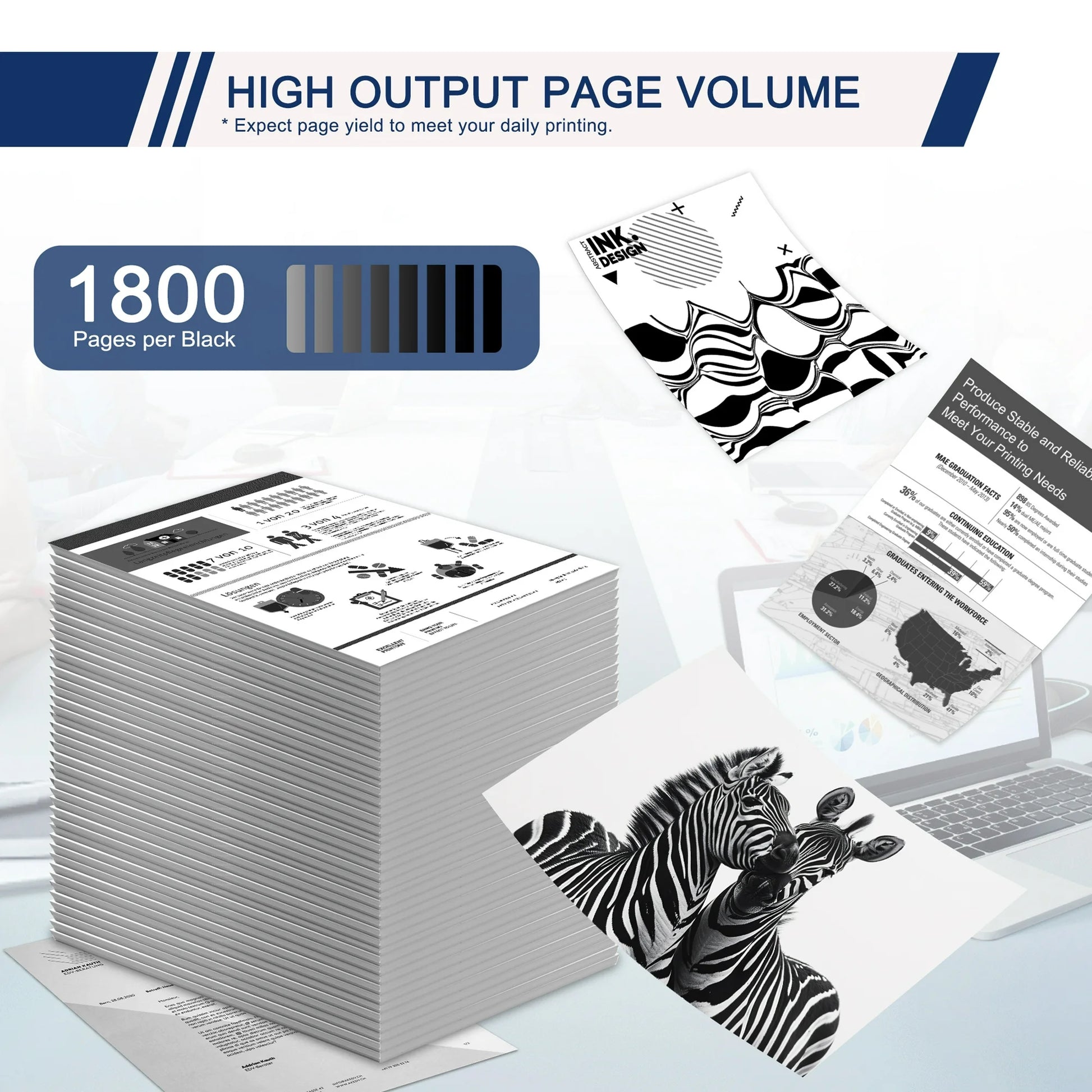 - High Page Yield : Up to 1,800 Pages per Black Toner Cartridge , 4% coverage (Letter/A4).