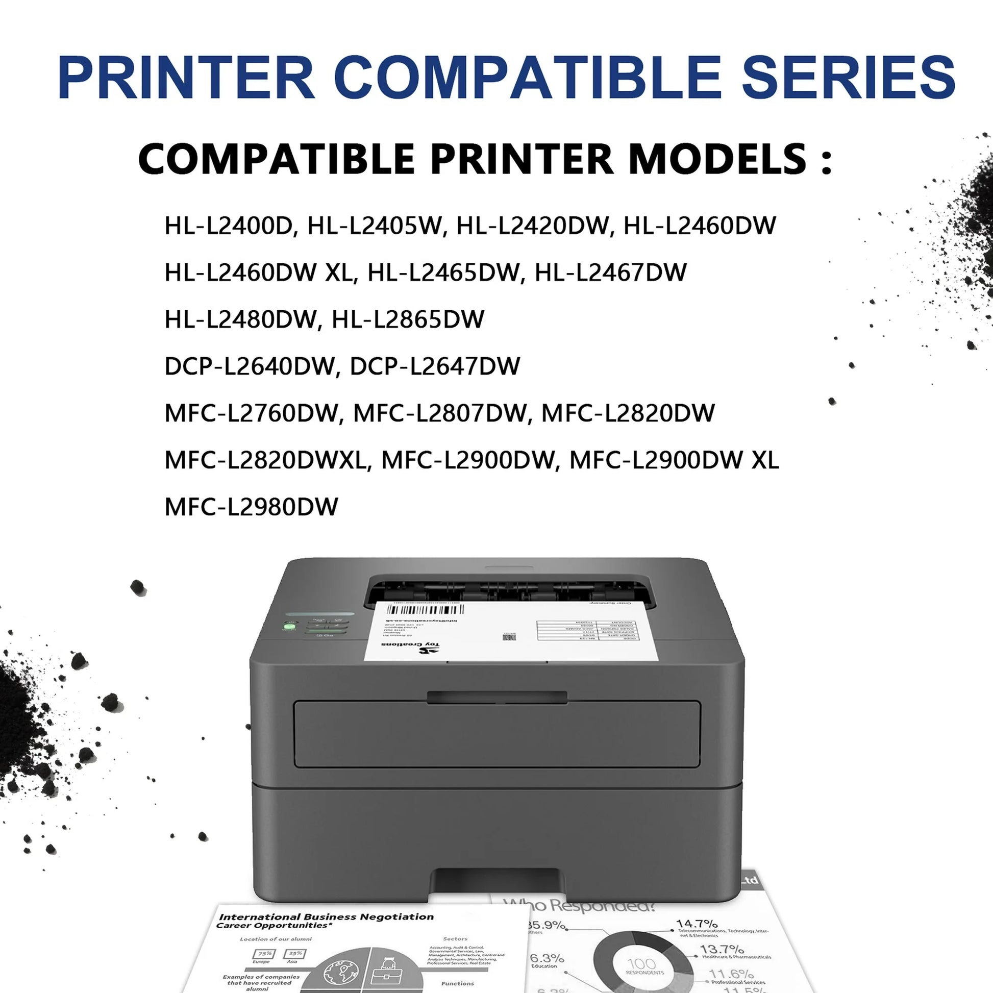 - Compatible with a wide range of Brother printers, including HL-L2400D, HL-L2405W, HL-L2420DW, HL-L2460DW, HL-L2460DW XL, HL-L2465DW, HL-L2467DW, HL-L2480DW, HL-L2865DW, DCP-L2640DW, DCP-L2647DW, MFC-L2760DW, MFC-L2807DW, MFC-L2820DW, MFC-L2820DW XL, MFC-L2900DW, MFC-L2900DW XL, and MFC-L2980DW Printer